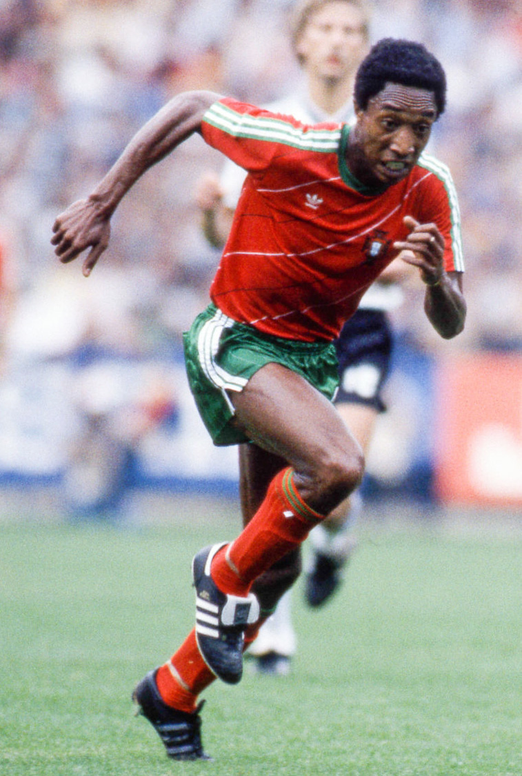 また、片足ずつ違うスパイクを履いた元祖(多分)、84年EUROのジョルダン選手(ポルトガル)