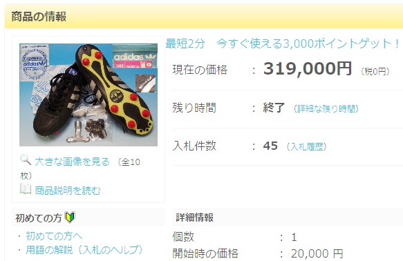 スパイクのオークションは長年見ていますが、驚愕の落札額でした。