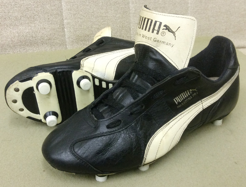 Several limited edition Puma football boots were sold, including this one, after Maradona became a hero in the ’86 World Cup. This model was made in West Germany and was only manufactured in 26 cm, the same size as Maradona’s foot.