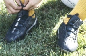 90年代のモデルなので、ちょっとつま先の革の広がりが大きいですが、それなりな感じです。左足はアルゼンチン結びにしてみました。