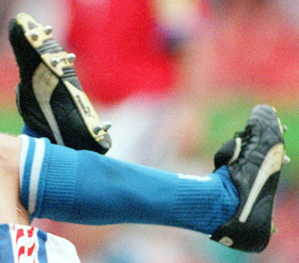 90年以降のプーマのドイツ製なので、それなりにハイエンドモデルだと思いますが、有名な選手が履いていたかは不明です。