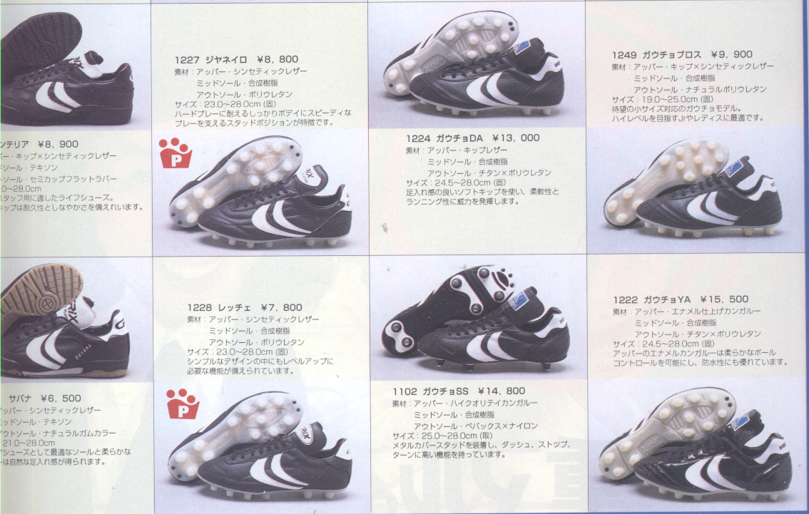 カラーモデルはないですが、右下にエナメルモデルがあり、当時の契約選手だったドゥンガ選手もそれを履いて広告に写っていました。