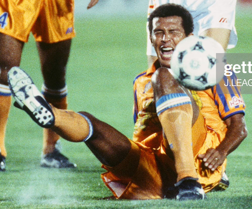 こちらのブラジルの名選手も同じようなソールをご愛用でした。アッパーはレセルバのようです。