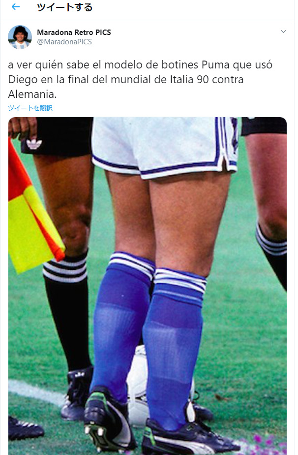 ディエゴ様が現役時代に履いていた昔のスパイクについては誤解がとても多いですが、こんなツイッターの投稿がありました。