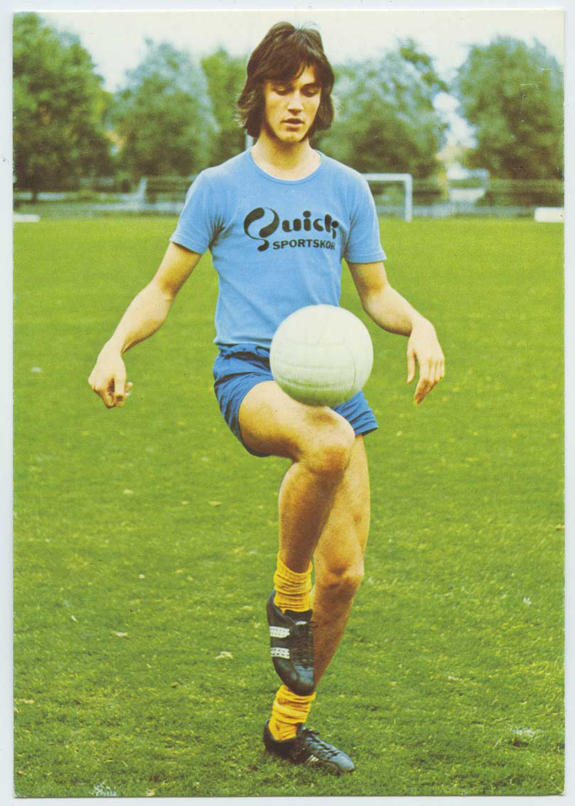 74年W杯のスウェーデン代表です。カラーもですが、メーカーもユニークですねえ。(追記:先生曰く、スウェーデン製の「HUNT」ではないかとのこと。さすがです。よい画像があれば追加します)