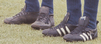 The teacher said that there was a player who wore Adidas-like 3-line model in England league in 60’s, and it was probably this maker.