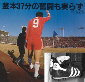 釜本さんは80年頃からこのモデルを使い始め、公式戦最後の試合でも履いていました。