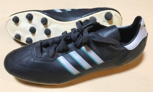 最初にebayで見つけた黄色ラインのUWE SUPER(珍しいブラジル製アディダス)を両足とも使うつもりで入手しました。しかし、ebayの出品画面ではわからなかったのですが、左足のソールだけマッケイ縫いされており、さらにマジックで何か書いてあったので、とりあえず保留し、別のモデルを探しました。