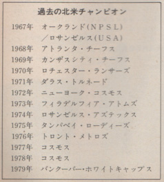 70年代後半のNASLには全盛期を若干過ぎたころの上記のスーパースターや、各国の有名選手が多数在籍し、それなりに話題の多いリーグだったと記憶しています。