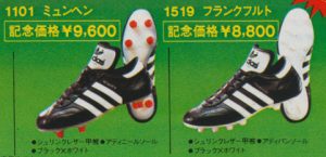 アディはアディダス創始者アディ・ダスラーのサイン入りの西ドイツ製モデルで、値段もかなり高額でしたが、グレードとしてはワールドカップより下ですし、当時の有名選手が履いたモデルではないと思います。