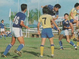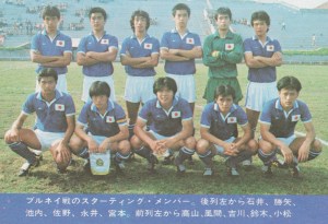 81年のユース代表。79年に自国開催で初めてワールドユースを経験したメンバー(風間選手や鈴木選手)が残り、次の大会の本戦出場を目指したアジア予選の時です。フル代表はアディダスがサポートしていたと思いますが、ユースはアシックスでした。