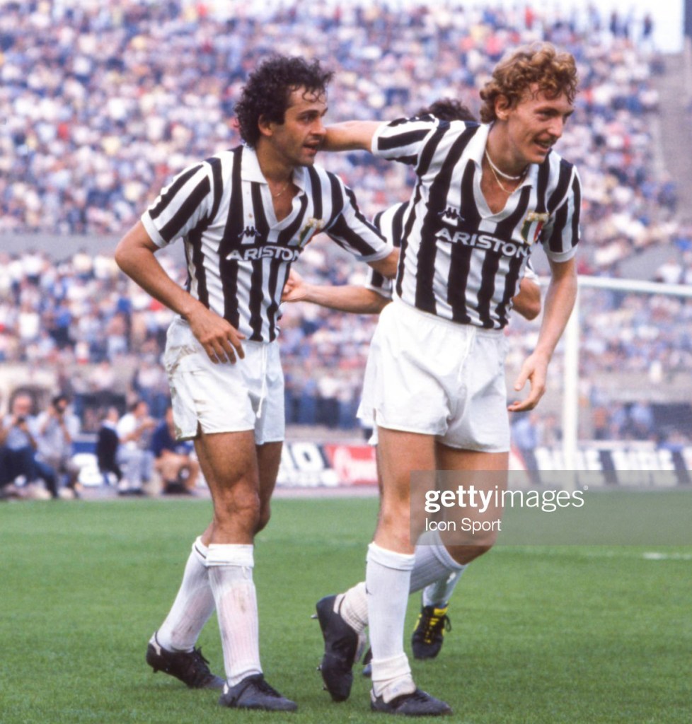 When they joined the team, the two foreign players (Platini and Boniek) were wearing black painted boots, as if they had not yet decided on a boots contract manufacturer.