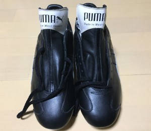 いずれもシュータンの西ドイツ製が「Made in West Germany」の小文字入りですので、80年代後半のモデルなのですが、プーマラインを横切るステッチの糸が黒だったり透明だったりと細かな違いがあったりします。80年代前半の同等モデル(KINGなど)には、この部分のステッチはありません。