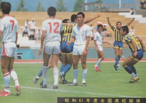 山口県で開催され、この当時はインターハイといえども1、2回戦だと土のグランドだったようで、国見高校の選手も準決勝(鹿実戦)、決勝(中京戦)しか、このカラーモデルは使用しなかったようです(確証はありません)。