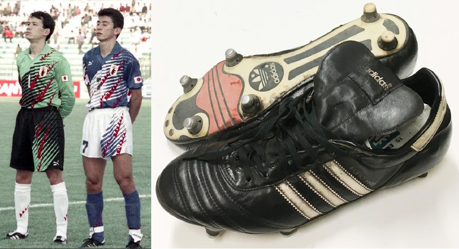 井原さんのJリーグ開幕時、ドーハのW杯予選のスパイクについては、その時のものと間違えてこちらのモデルを紹介してしまった時に、おわびを兼ねて詳細に書いたのでそちらをご覧ください。