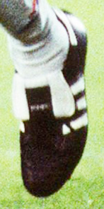 このデサント時代の青マークで、取替え式モデルはこのシリーズぐらいしか記憶にないですが、3本線は途中で切れていないし、6本スタッドのようで、西ドイツ時代のWORLD CUPのようです。