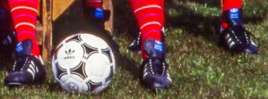 プラティニ選手が3本線が途中で切れたスパイクを履いている…。