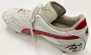 山本選手が実戦でよく使っていた取替え式タイプです。残念ながら右足のみです。