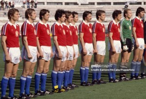 W杯本戦では白の3本線のWORLD CUP 74らしきモデルでしたが、73年のスコットランドとの親善試合では、