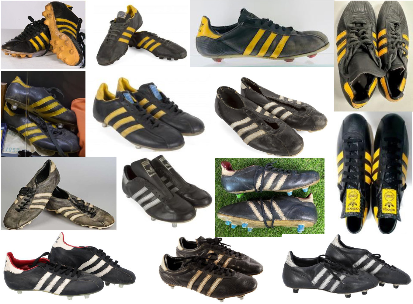 ただ、ディエゴ様がアディダスを履いていた期間はとても短かったため、いろいろなモデルを履いていたとは考えにくく、カラー画像だと黄色ラインの固定式がほとんどのようで、