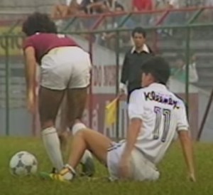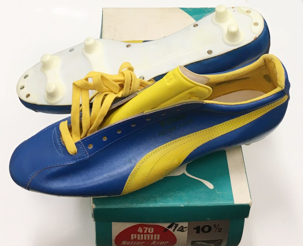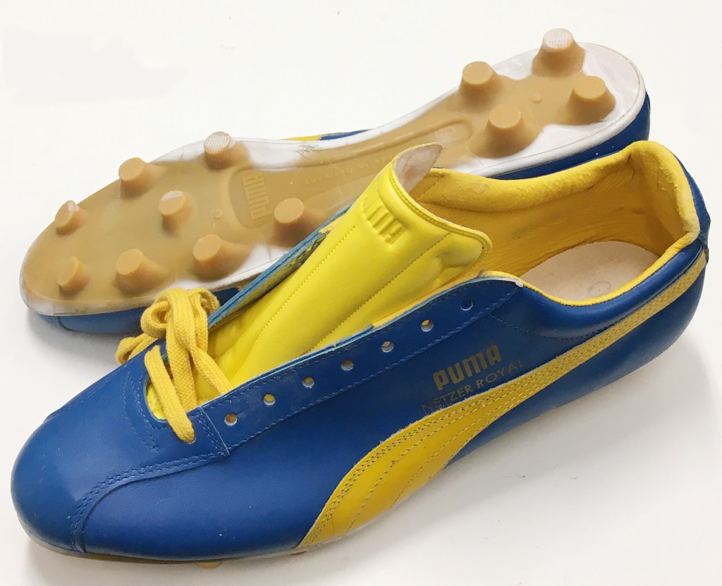 1987年のチャリティーマッチはユニフォーム(たまたま色が青と黄色)、ボールはプーマなので、プーマが主催していたようですが、ネッツアーさんのスパイクはアディダスでした。