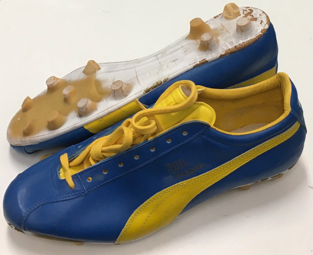 1987年のチャリティーマッチはユニフォーム(たまたま色が青と黄色)、ボールはプーマなので、プーマが主催していたようですが、ネッツアーさんのスパイクはアディダスでした。
