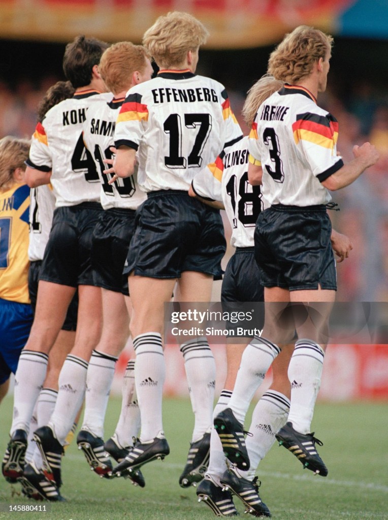 準決勝スウェーデン戦で、FKを防ぐドイツ選手たちは様々な取替え式モデルを履いていました。