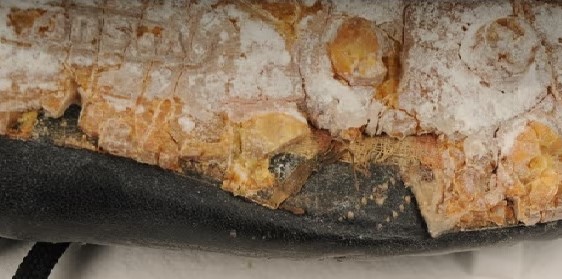 固定式の宿命でソールがボロボロですが、博物館の威信をかけて、ソールの材質を質量分析で解析、形状を3Dスキャンまでして復元するそうです(2015年のこちらの記事)。