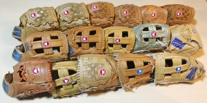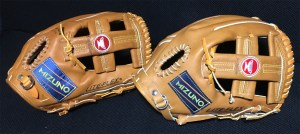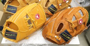 図7 マーク交換後のグローブたち。ついでに青カップモデルも交換してもらいました。