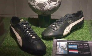 ユニフォームは所属クラブ、アルゼンチン代表の各年代のものがそろっているようです。 ただ、スパイクは…。