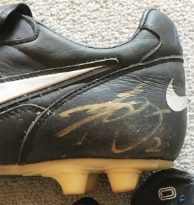こちらのメーカーのモデルも使っていたようです。やはり試合では取替え式を履いていたようですので、現物は練習用スパイクかもしれません。